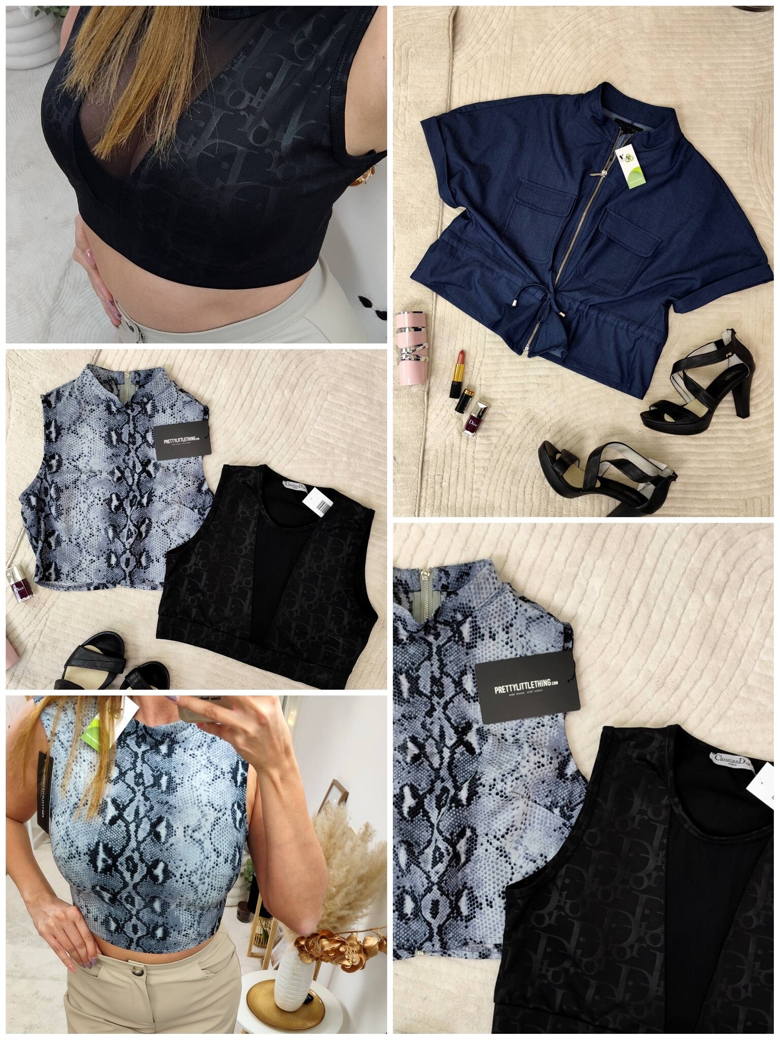 Pretty Little Thing szürke ujjatlan crop top